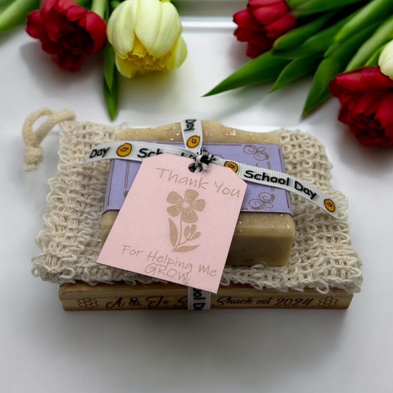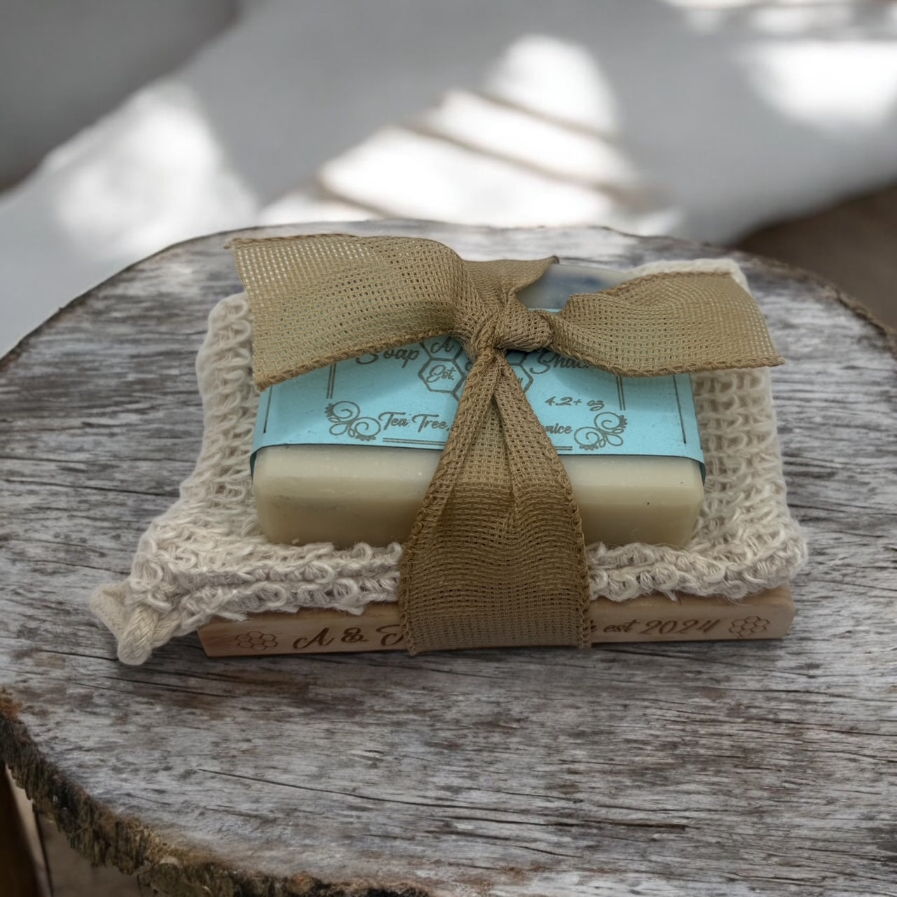 Our Sudsy Bundle is all you need to get started on our all-natural amazing soap experience. The bundle includes a soap (scent of your choice), wooden soap saver; to make your soap last longer, and soap saver bag; an all-natural way to cleans and exfoliate your skin. This is all tied together with a beautiful ribbon (color or theme of your choice) and a personalized label! These make the best Mother's Day Gifts!